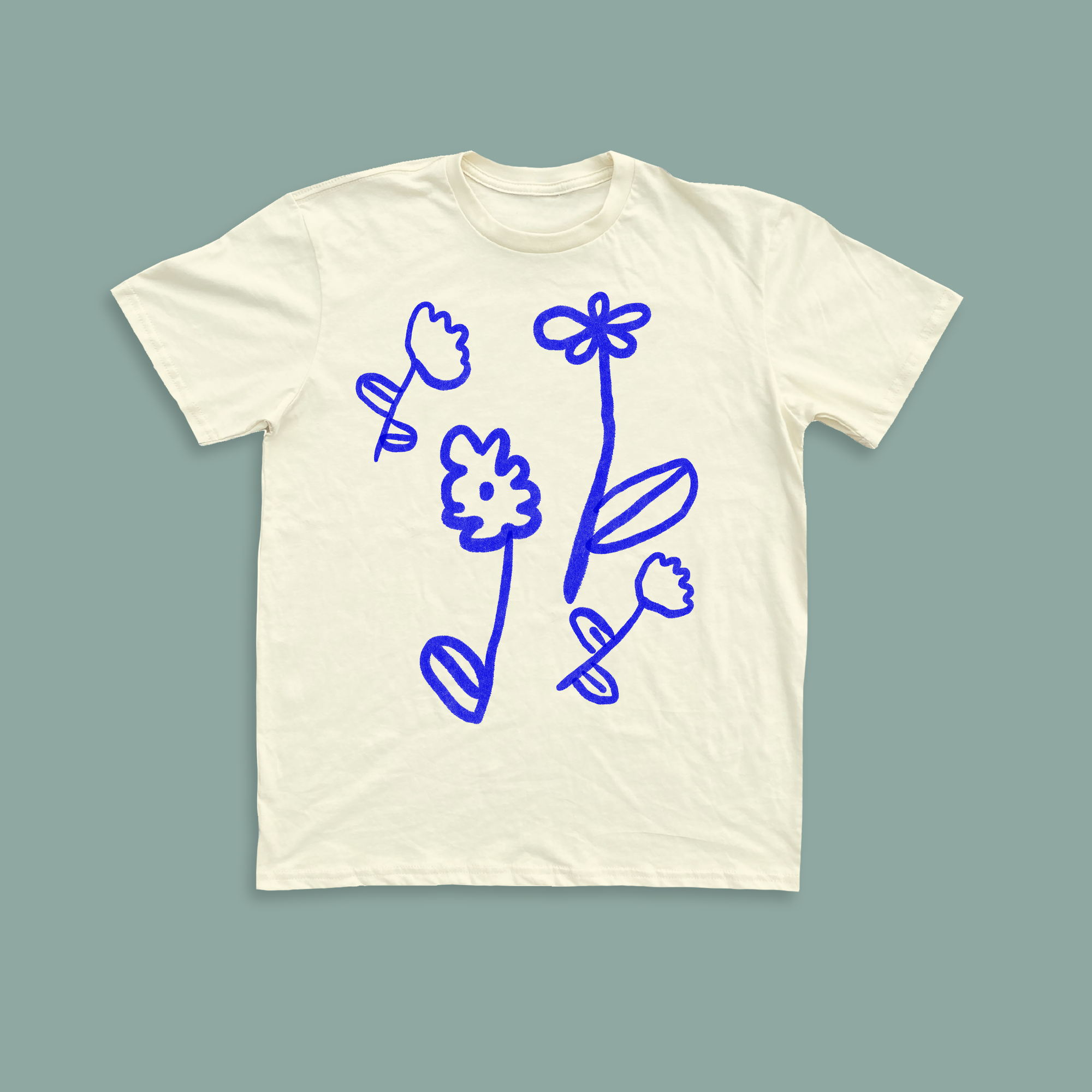 Blue Flowers Unisex Tee Cream Graphic Tee
