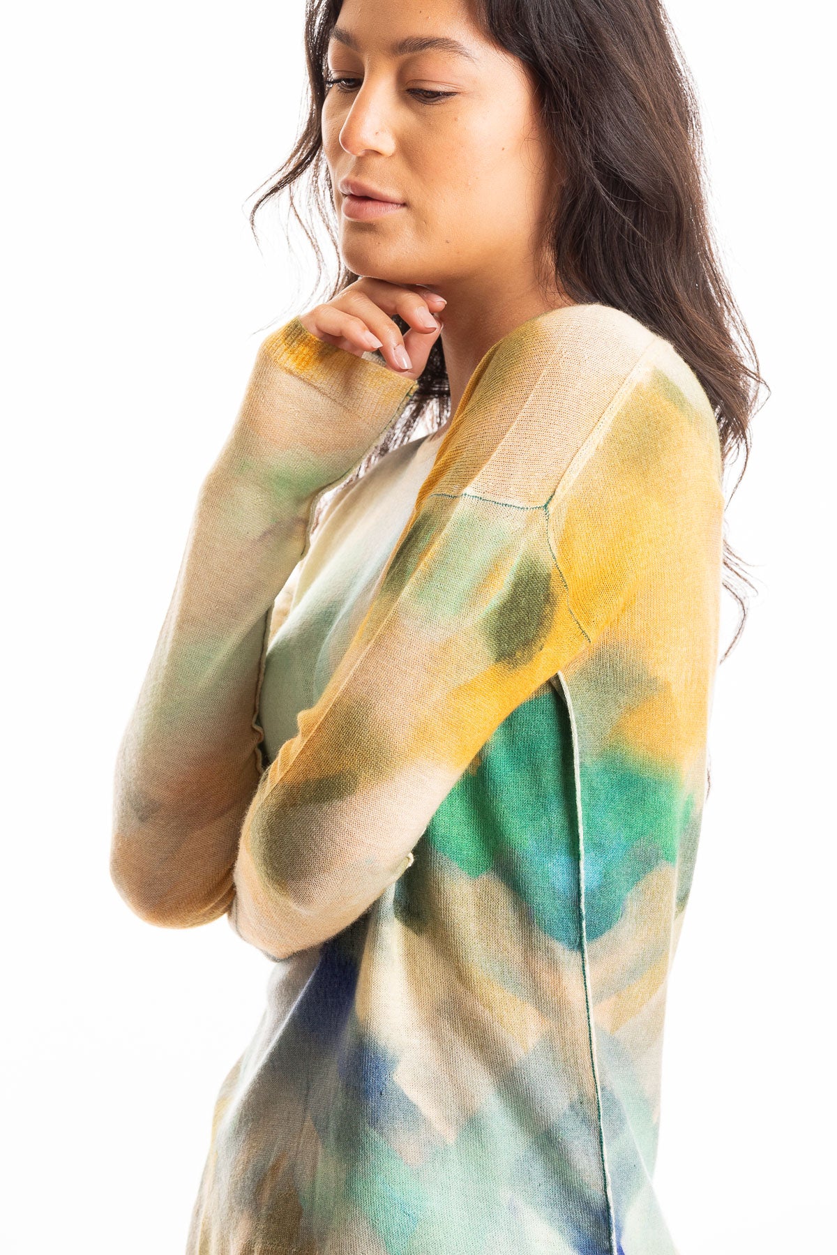 Dreamy Cashmere Block Crew - Beige/Turmeric