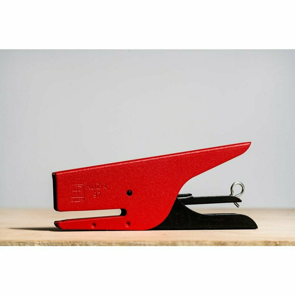 The elegant and functional design is from Italy and the stapler is produced in a four-man operation in a small factory near Milan. The principle of operation is simple and effective: a spring is tensioned with a hand lever, a striking pin releases a single clip from the row of clips and staples up to 16 sheets of paper, the clip squeezing in the recess of the lower leg. The stapler in rich, cheerful colors is extra small and staples up to 16 pages together. Refill packs of 1000 staples can also be purchased separately.