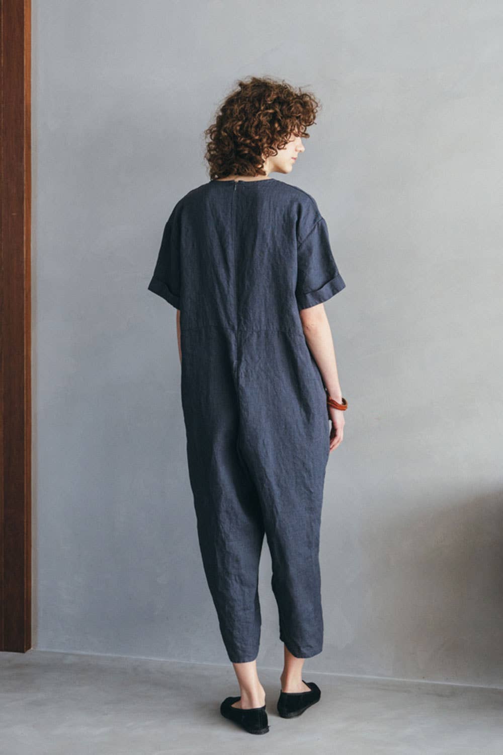 This relaxed-fit jumpsuit features a deep rise and a sleek back zip closure for a refined look. The rolled sleeve design adds an accent, while the versatile silhouette works with both casual and polished styling. The pants can be rolled up for a relaxed touch.